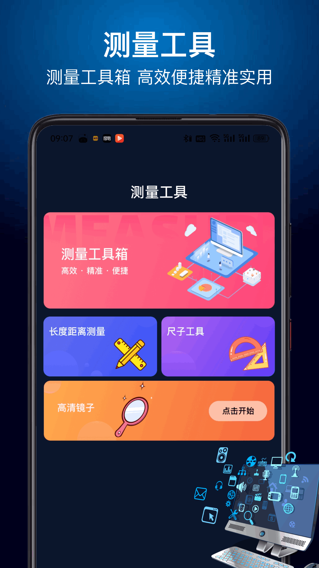 kiki助手包含了测量工具箱、实用工具、分贝仪、量角器、水平仪、指南针、挂画校正、手电筒。让你生活变得更加便利,期待您的下载体验。