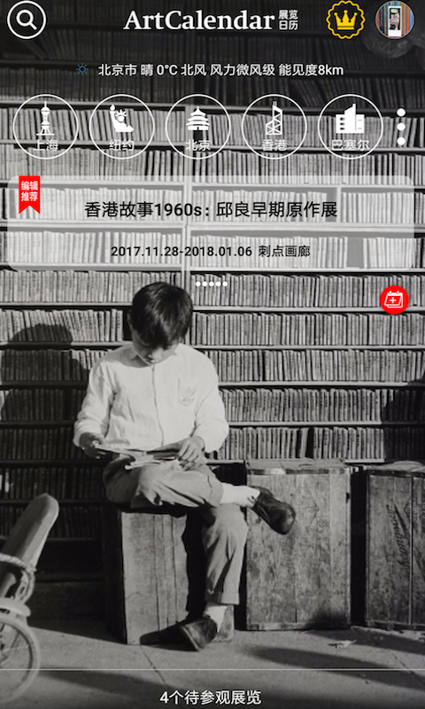 ArtCalendar 是一款全球艺术展览日历 APP,它帮你搜罗世界各地美术馆、双年展/三年展、艺术博览会与画廊的展览信息,让你时刻掌握最新鲜的艺术资讯。系统支持与手机自带日历无缝连接,一键好友分享。 无论你身处所在城市还是旅行目的地,ArtCalendar 都能通过精准定位,快速开启城市天气预报,帮助你制定观展计划。 ArtCalendar 展览日历 APP 于2017年3月正式上线,由现代传播集团荣誉出品。 联系我们:artcalendar@modernmedia.com.cn