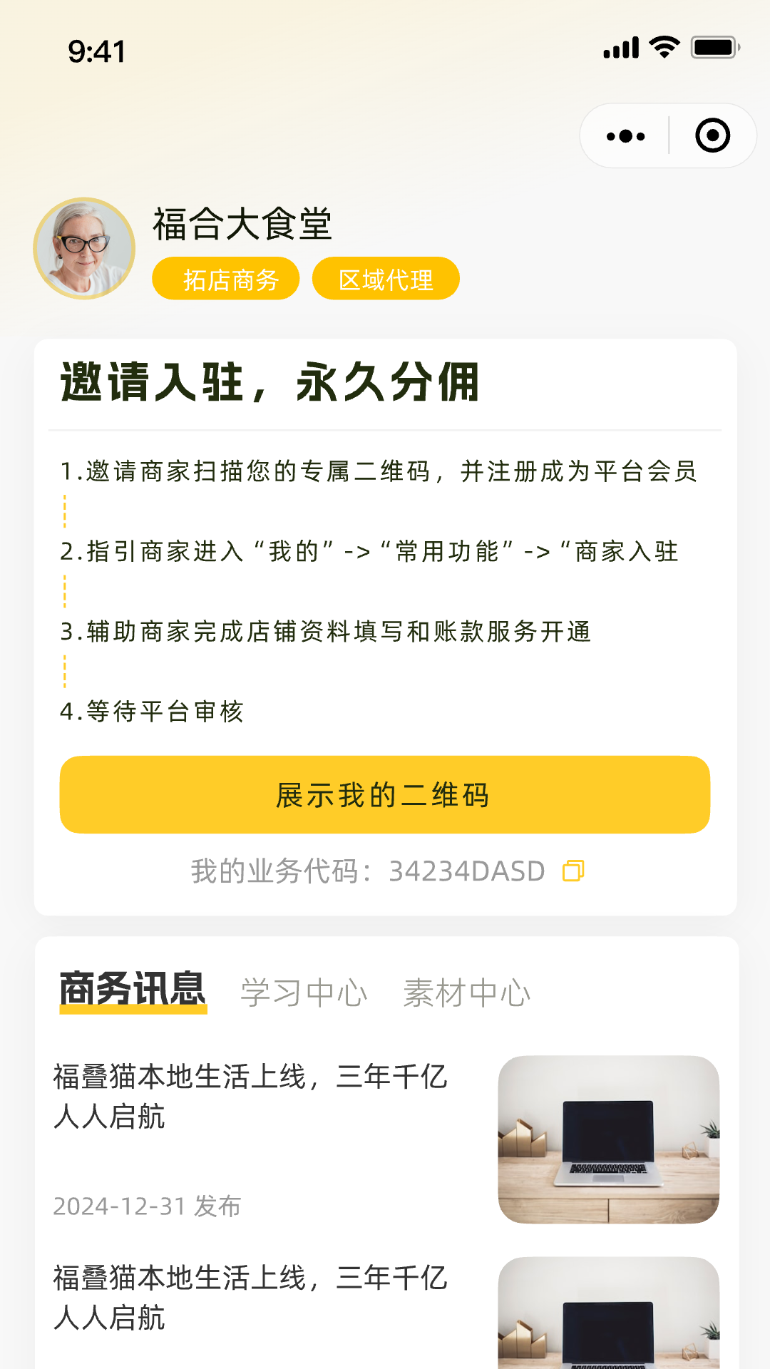 福叠猫商务版是专为区域服务中心和拓店达人打造的专业化商务管理平台。基于福叠猫独特的共创生态模式,为商务人员提供全方位的拓店管理、业绩统计和佣金结算服务。