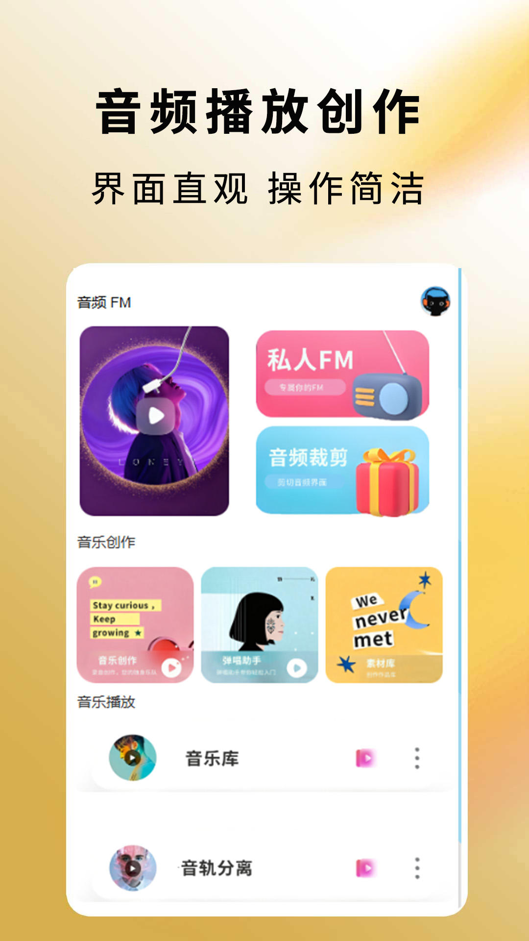 主要功能: 【音频剪辑】精确到毫秒的专业剪辑;从本地音乐库导入音频,自定义剪切范围,对裁剪的音频进行编辑 和制作。 【音频拼接/合并】轻松实现多音频合并,对音频文件拼接剪辑,合成出想要的音乐文件。 【音频提取】可以从抖音、快手等各类短视频中提取mp3或者其他格式的音频,将视频MV秒变音频文件。 支持音乐剪辑、音频提取 【电视节目】节目信息清晰:卫视等各类节目信息一目了然,快速了解播出动态,预约功能帮您锁定精彩 内容 ;