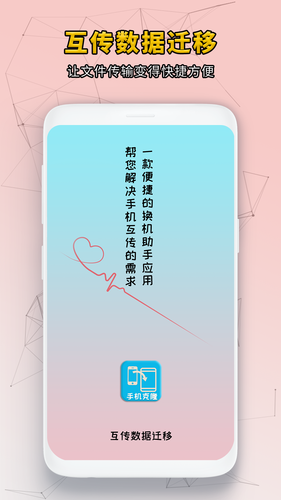 互传数据迁移,免费换机,支持华为、小米、OPPO、vivo、三星、荣耀等品牌设备迁移到新手机,支持不同手机互传,支持多种新旧手机匹配,一键将旧手机的联系人、短信、照片、音乐、视频、应用迁移到新手机,轻松换机。无论身处什么环境,使用互传极速分享应用、图片等文件。工具多多。 隔空投送:手机文件,一键传送 手机克隆:全面支持各种文件,照片、视频,超大文件快速传输能力 手机搬家:一键换机,文件传输,不再为更换手机而烦恼 换机助手:快捷的手机换机和文件传输工具 软件搬家:打破手机间的传输介质,实现o流量传输 手机助手:两机直传,数据安全有保障
