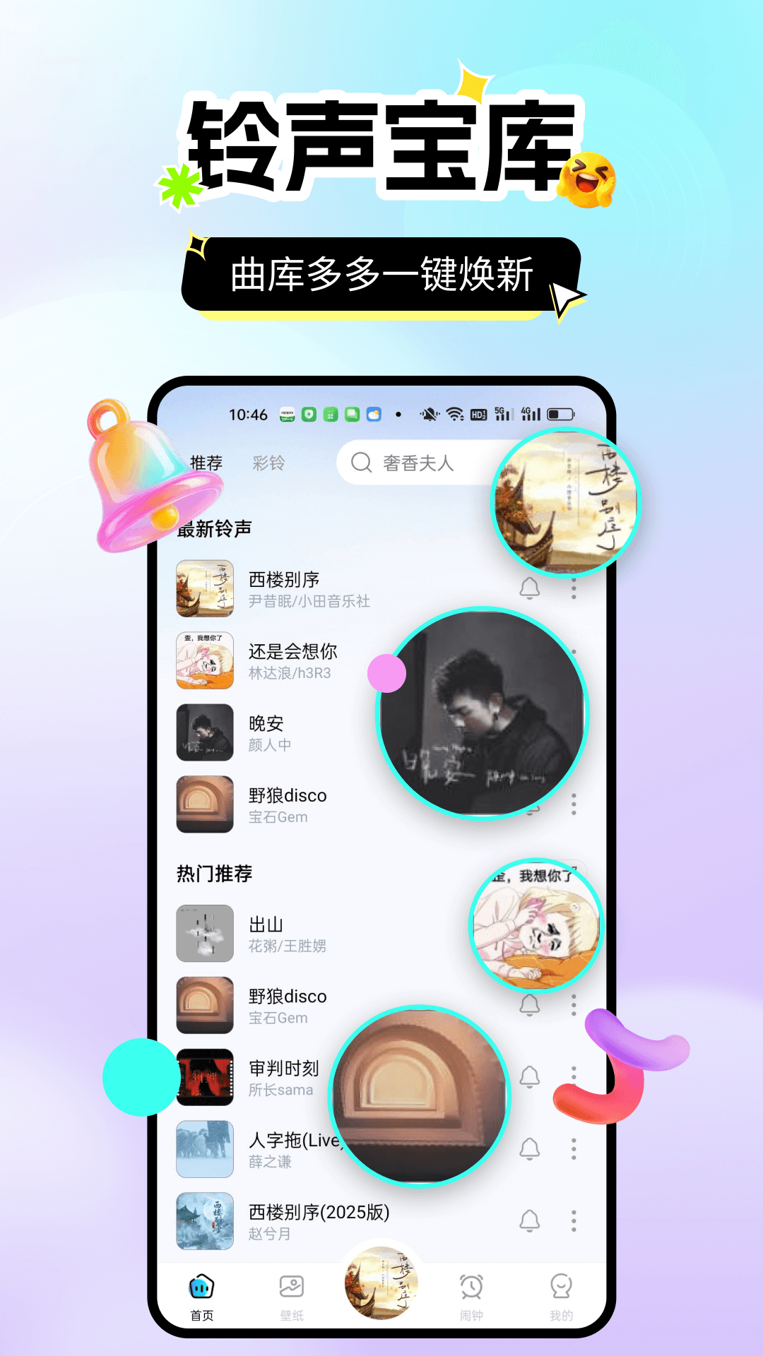 铃声手机下载App,集多元铃声与精美壁纸于一体,轻松定制个性手机! 铃声手机下载App是一款功能多样的应用,它将铃声下载、设置以及壁纸美化等服务融为一体,助力用户打造专属的手机个性空间。 在资源储备上,这款App十分丰富。推荐页面精心规划了最新铃声与热门推荐等不同板块,能及时呈现当下受欢迎的铃声资源。新歌榜还细致地按照新、怀旧、搞笑等风格进行分类,方便用户依据自身喜好快速定位。同时,App还提供大量精美的静态壁纸,涵盖风景、星空等多样主题,为手机界面增添别样风采。 功能方面,该App表现出色。用户能够便捷地对心仪的铃声进行收藏与下载操作,还能随时查看详细信息。在设置环节,它支持用户将下载的铃声灵活设置为手机闹钟铃声,并且可以自由设定重复周期、提醒方式,添加个性化备注,充分满足不同生活场景下的提醒需求。 App的界面设计简洁易懂,各个功能入口清晰明了,操作过程流畅无阻碍,即使是初次接触的用户也能迅速掌握使用方法。而且,资源更新及时迅速,让用户始终能够接触到新颖的铃声和壁纸内容。 如果你想让自己的手机铃声更具特色,或者想为手机屏幕换上新的视觉风格,那么铃声手机下载App值得一试。快来下载体