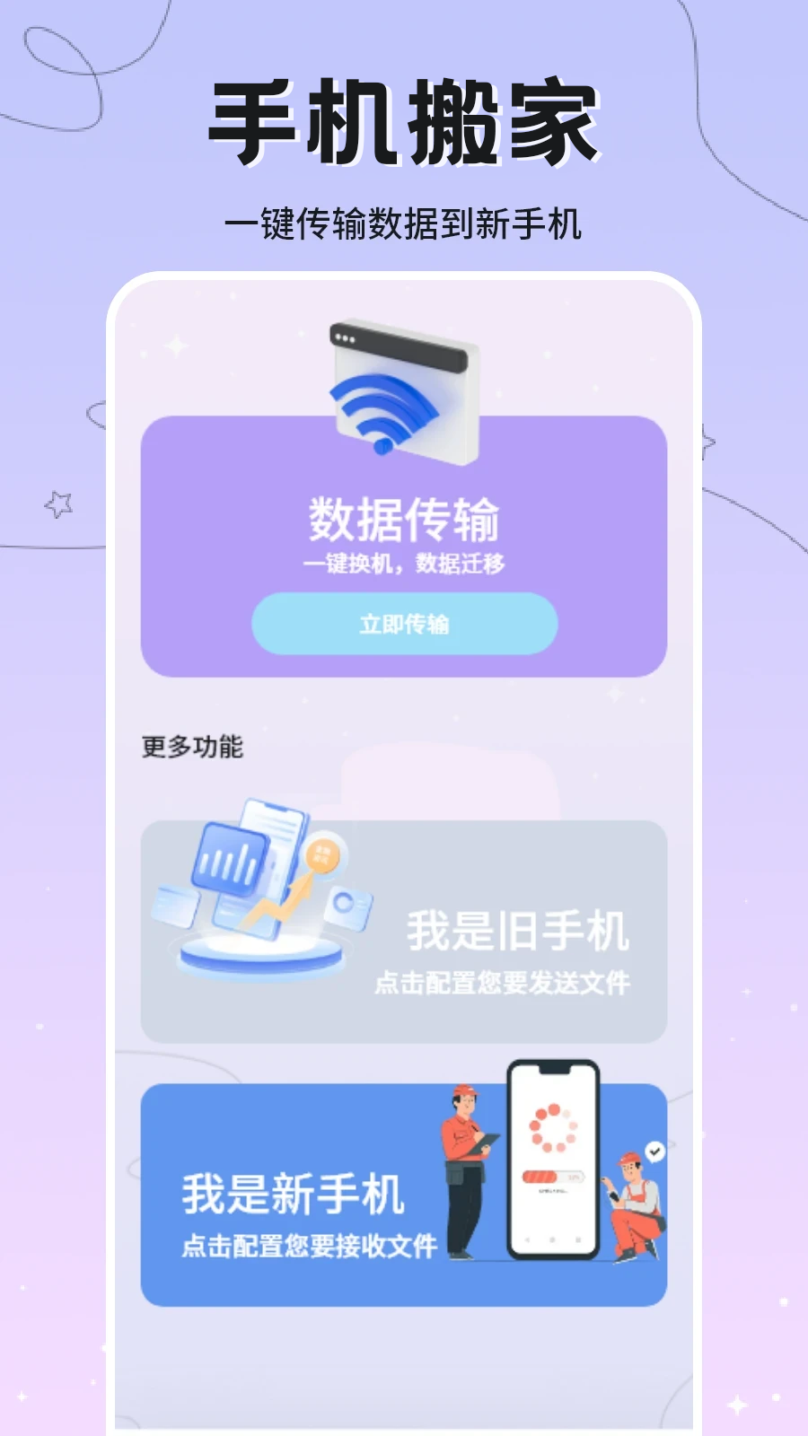 无需数据线,通讯录 、图片、 视频等重要数据,一键可从旧手机中迁移到新手机,手机搬家,换机轻松方便。 速度快: 通过局域网wifi传输,速度飞快,一键换机数据迁移,互传资源不费任何手机流量。