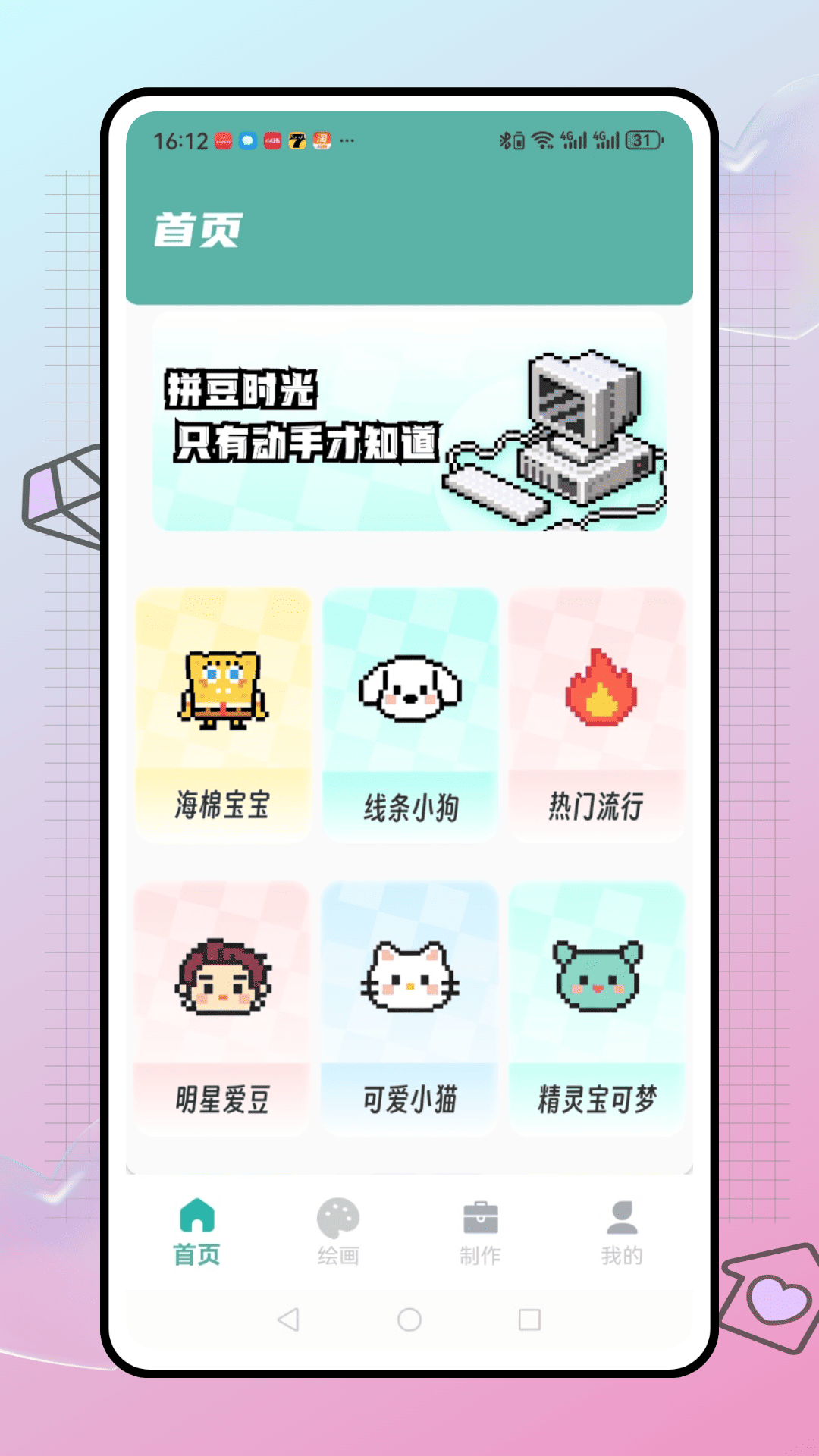 拼豆机集图片拼豆、自由绘画、书法练习、手工制作于一体,让创意随心发挥。 动手又动脑,轻松解锁拼豆、绘画、书法多种乐趣,打造专属手工作品,体验创作成就感,好玩又解压!