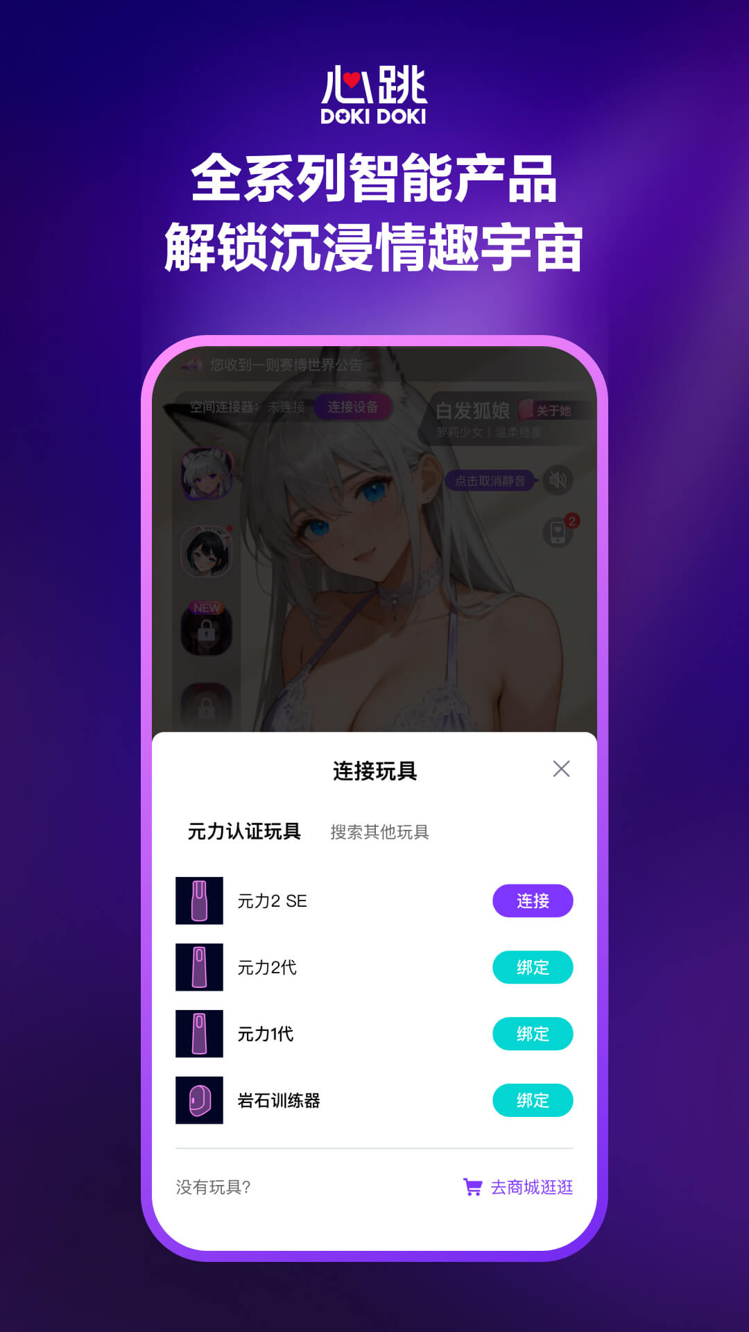 * 本产品仅限 18 岁以上用户使用。 心跳元力全新上线,带你玩转情趣赛博宇宙,开启两性健康新生活! 【智能体感互联】 一键连接心跳 DOKIDOKI 全系列智能硬件,沉浸式互动剧情、虚拟伴侣互动、趣味小游戏…… 超多好玩互动等你来体验。 【元力智能互动杯】 联动你的虚拟女友,全新养成玩法上线!元梦天使陪你漫游赛博宇宙,比恋爱游戏更好玩,比模拟互动更真实。 【万能遥控】 支持心跳 DOKIDOKI 全系列智能产品,多种模式随心玩: 单人模式:指尖滑动操控,自由又解压;同步音视频节奏更沉浸 双人模式:近距离/异地遥控互动,新鲜又刺激 【激活二次元男友】 女生专属福利!绑定智能设备,即可解锁二次元虚拟男友。 【两性趣味玩法】 没有设备也能玩!双人亲密小游戏,轻松升温感情,让互动更有氛围。 【男性持久训练】 科学凯格尔训练,搭配训练计划 + 趣味小游戏 + 详细数据记录,进步曲线一目了然。设定目标,跟着课程稳步提升战力,搭配训练器使用,效果加倍!