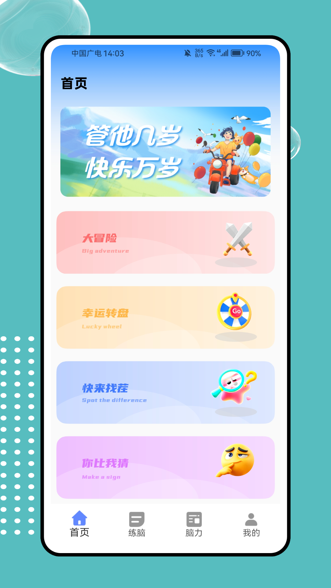 一款趣味十足的脑力锻炼小工具,集脑筋急转弯挑战、热门歌曲竞猜、趣味谜语破解等功能于一身,还精心打造了成语接龙竞猜、民俗风情对联、幸运大转盘、默契互动你比我猜、眼力大考验快来找茬等多样工具。