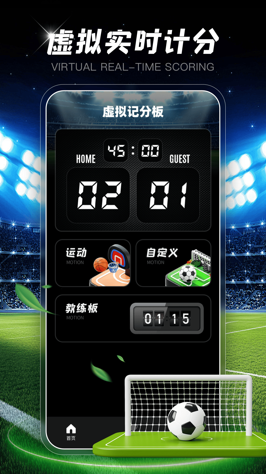 虚拟记分牌都能为您提供多方位的计分和记录服务。篮球、足球计分:应用内置了针对篮球和足球的专用记分板,轻松记录得分、犯规、24秒违例等关键数据。同时,内置的响哨功能让裁判工作更加便捷。 自定义页面与项目:除了篮球和足球,虚拟记分牌还支持羽毛球、乒乓球等多种运动项目的计分。用户可以根据需要自由添加组别和成员,创建自定义的记分页面,满足不同比赛和训练的需求。 教练战术板:应用内集成了篮球和足球的教练战术画图功能,教练可以在比赛或训练中实时绘制战术图,为队员提供清晰的战术指导。 计时与暂停管理:精准的计时系统,支持比赛时间、暂停时间、加时赛时间的设置和管理,确保比赛的顺利进行。