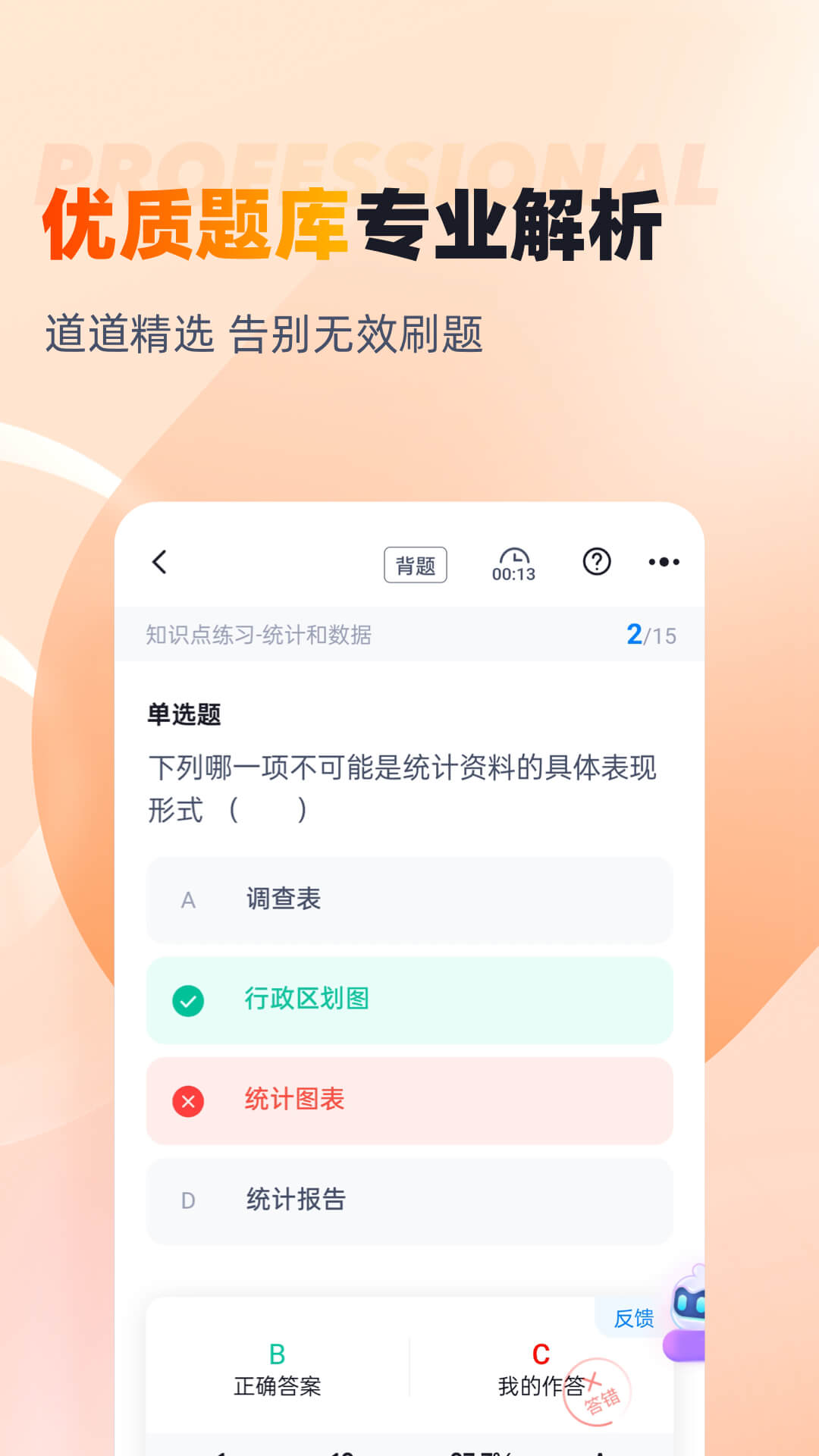 中级统计师考试,是统计专业人才职业进阶的关键关卡,知识点繁杂、考查形式多样,让不少考生备考之路充满挑战。中级统计师考试聚题库,精准对接中级统计师考试需求,是专为中级统计师考生打造的备考利器。 打开中级统计师考试聚题库,海量优质试题即刻呈现。这里的每一道题,都紧扣中级统计师考试大纲,覆盖统计法规、统计实务、统计基础理论及相关知识等所有核心考点。无论是单项选择题的细致辨析,还是综合应用题的系统解答,都能在聚题库中找到对应练习。 中级统计师考试聚题库将知识点进行科学分类,考生可以根据自身薄弱环节,针对性选择章节练习,逐个击破知识难点。同时,模拟考试板块完全复刻中级统计师考试场景,帮助考生提前熟悉考试节奏,把握答题时间,练就从容应考的心态。 在中级统计师考试聚题库,每一次练习都有迹可循。错题自动收录功能,会记录下考生的每一次失误,方便后续针对性复盘,加深对知识点的理解与记忆。此外,详细的题目解析,从知识点原理到解题思路,层层剖析,让考生不仅知其然,更知其所以然。 中级统计师考试聚题库,陪伴每一位考生走过备考的日日夜夜,用专业的内容、贴心的功能,为中级统计师考试成功保驾护航。