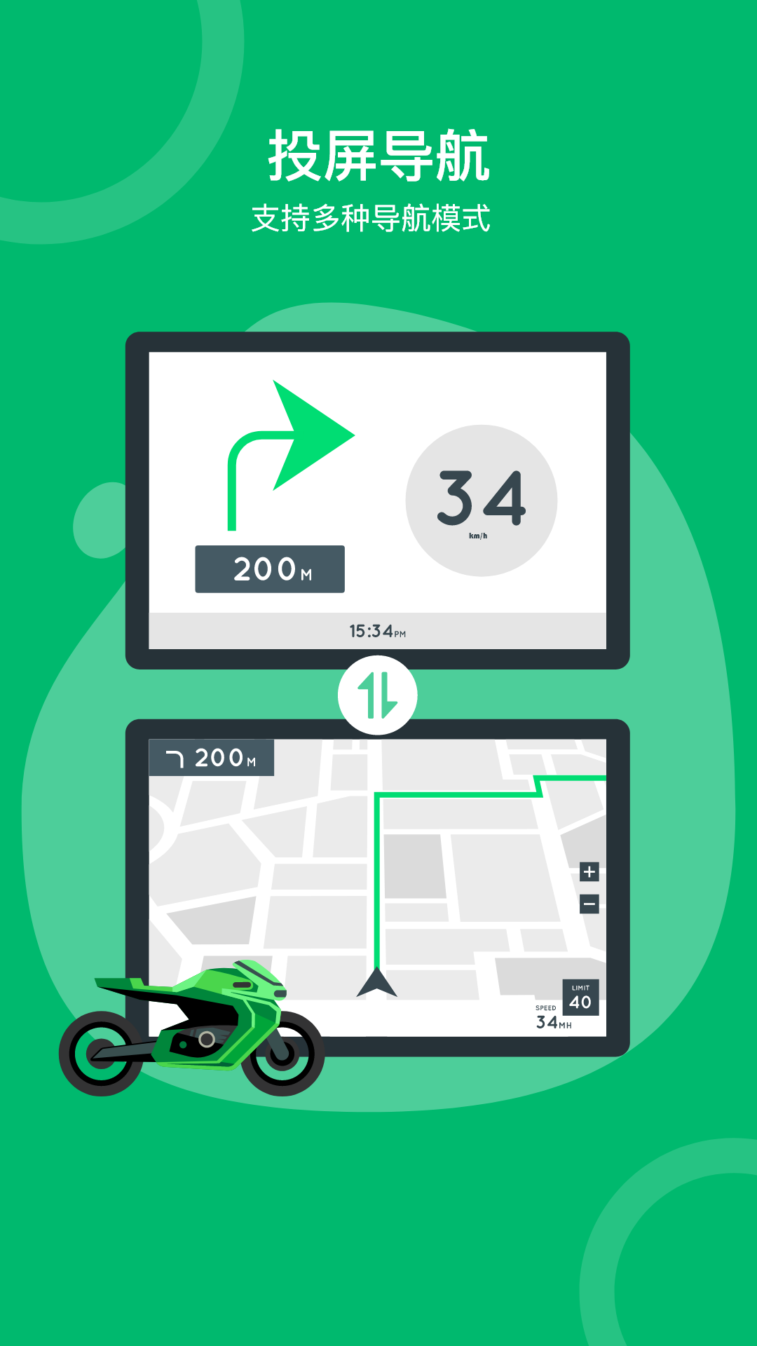 绿波出行是一款非常专业的摩托车出行软件,与摩托车仪表、记录仪等设备互联使用让您的出行您更安全、更便捷,以下是该应用的主要功能介绍: 投屏导航:通过蓝牙、WiFi与车机连接,将导航信息投屏到车机 来电显示:当您的手机有来电时,车机自动显示来电人的姓名和电话号码 音乐控制:控制手机上的音乐播放应用 智能语音:通过语音指令来控制应用或车机的各项功能 骑行记录:记录您的骑行路线、速度、时间等信息 录像管理:管理行车记录仪的录像