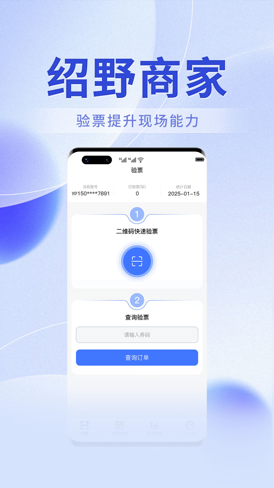 绍野文旅商家版,是绍野文旅针对在抖音团购销售的演出门票、景区门票等票务,能够随时随地的选择POI地址后进行扫码验证核销以及查询订单和撤销验证核销操作的移动APP。 当前的主要功能: 1.选择POI地址情况下,可以任意时间和地点进行输入券码号进行验证核销。 2.扫码验证核销,用手机摄像头扫描二维码进行快速验证核销,或者选择本地相册中的二维码进行扫码验证核销。 3.查询订单信息和订单核销状态,以及对已经核销的订单进行撤销验证核销操作。