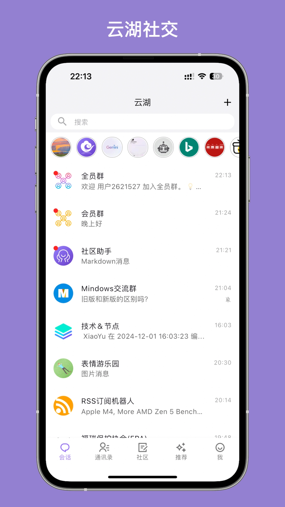 灵活高效的社交工具软件 集成多种AI助手,支持全平台使用,拥有丰富的机器人生态和兴趣社区,让沟通更智能高效 全平台支持 MacOS、Windows、Android、iOS、Linux
