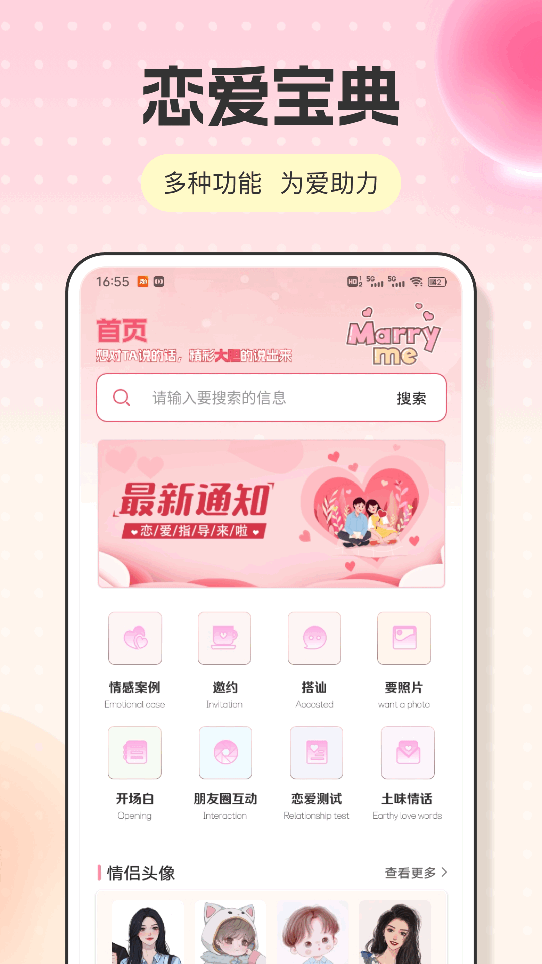 高情商暖心画饼,让异性离不开你的恋爱话术! 想要爱情甜甜蜜蜜一直到老? 这可不是梦!我们有多种场景聊天话术,还有各种精选案例和土味情话等,都能够助你的恋爱之路越走越顺。还有精美的情侣头像和高清情侣壁纸等你来发现。里有助你恋爱成功的宝藏,赶快打开它吧!