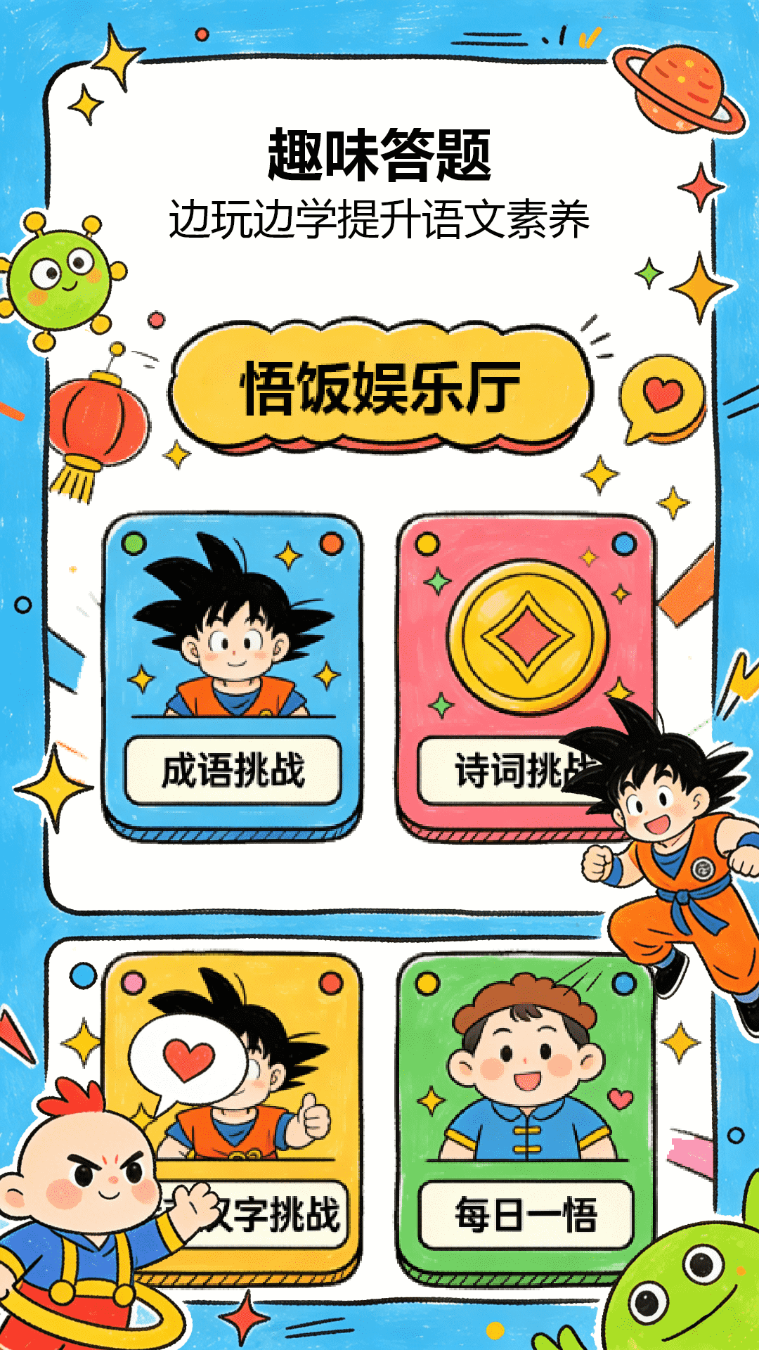 吾圈,集知识挑战与专注力训练于一体的趣味学习平台。 内含成语挑战、诗词挑战、金币汉字挑战、近义词反义词挑战,边玩边巩固语文知识; 更有每日一悟带来暖心感悟,专注训练帮你提升定力与效率。 轻松娱乐,快乐成长,在趣味互动中收获知识与好习惯。