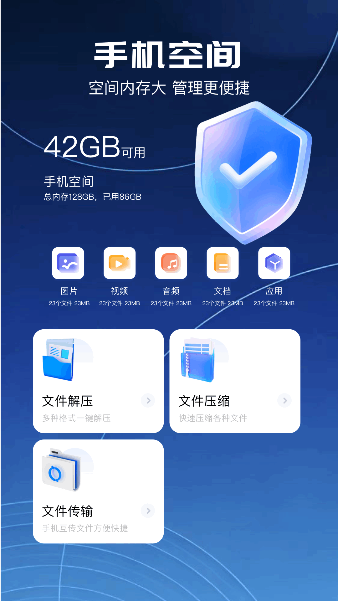 奇妙App应用介绍 奇妙App,一款集文件管理、文件传输、文件解压与压缩以及多功能文件处理工具于一身的神奇应用。在这里,无论是日常办公还是生活娱乐,都能找到你需要的实用工具,让你的手机变成真正的“百宝箱”。 一、文件管理专区 奇妙App的文件管理专区,为你提供了图片、视频、音频、文档、应用等全方位的文件管理功能。你可以轻松浏览、分类、搜索和整理手机中的各种文件,让手机内存井然有序。 二、文件传输与压缩解压 无需数据线,奇妙App支持快速的文件传输功能,让你轻松实现手机与电脑、手机与手机之间的文件互传。同时,文件压缩与解压功能也一应俱全,无论是压缩文件以节省空间,还是解压文件以查看内容,都能轻松搞定。 三、文件处理工具大全 图片工具: 长图拼接与自由拼接:无论是将多张图片拼接成长图,还是自由组合图片,都能实现。 图片特效与添加水印:为你的图片添加各种炫酷特效,或者添加水印以保护版权。 图片打码:一键打码,轻松保护隐私。 视频工具: 视频拼接与压缩:将多个视频片段拼接成一个完整视频,或者压缩视频以节省空间。