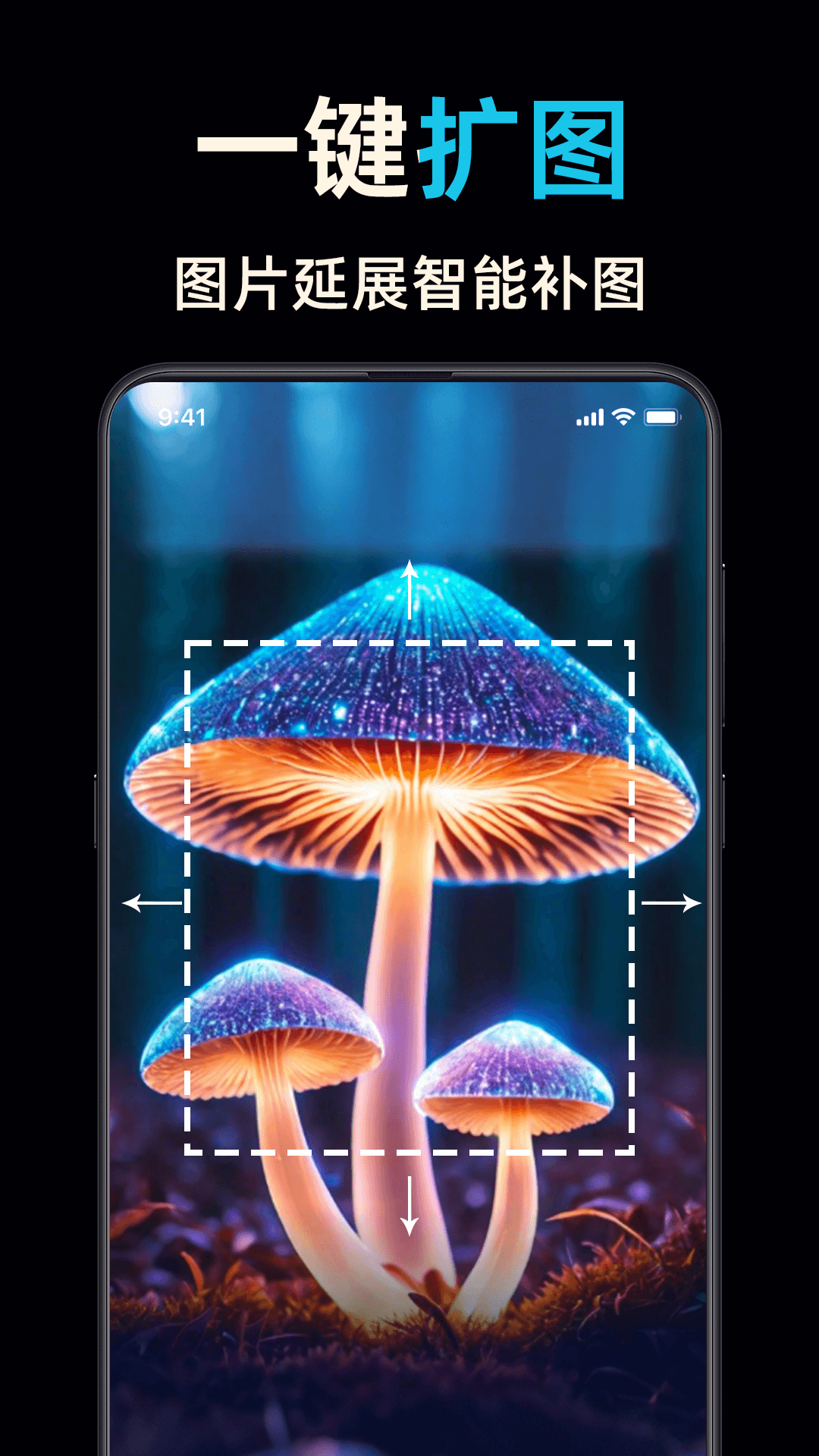 扩图是一款可以帮您扩展图片及图片美化制作的软件,适合图文类自媒体博主、设计师、美术老师、商务人士及追求图片美的爱好者等人群使用。 ##【 一键扩图】将你的废片变成有趣又好看的图片! 扩展图片四周呈现出更加美观、生动的新图片,支持画幅扩展(1:1、9:16、16:9、3:4、4:3、2:3、3:2),等比扩展(110%-200%)、还支持自由扩展哦,想扩哪里扩哪里~ ##【一句话改图】无需PS技术轻松改图! 图片怎么改?你说了算!将图片转为黑白线稿、去掉照片上的路人、把背景换成海边、图片改成漫画风格、把衣服换成蓝色的、让她笑起来~等等等 ##【尺寸修改】轻松改尺寸改像素! 报名照、证件照、产品宣传图像素或者尺寸不符合要求?只需上传图片,输入指定的尺寸或者像素,即可一键修改,真的简单又实用~ ##【商品图换背景】电商人都在用! 只需上传产品图,描述您想要的背景,即可生成海量场景图,帮您快速切换场景,专业商品图一秒即出。 ##【画质修复】告别模糊还原清晰画面! 将模糊低画质图片快速去噪、优化纹理细节提升人像质量和整体画面清晰度;支持修复老照片|低像素图片|被网络和聊天工具传输压缩后的图片。